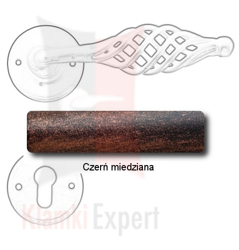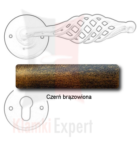 Klamka Budapest 2799 z dolną rozetą na wkładkę patentową wykonana jest z ręcznie kutego żelaza i dostępna w trzynastu powłokach kolorystycznych. Pozwala to dobrać kolor klamki do charakteru wnętrza lub do kolorystyki drzwi i okien.