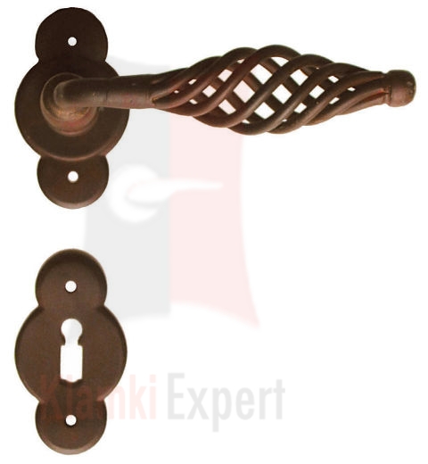 Klamka Budapest 2801 z dolną rozetą na klucz zwykły wykonana jest z ręcznie kutego żelaza i dostępna w trzynastu powłokach kolorystycznych. Pozwala to dobrać kolor klamki do charakteru wnętrza lub do kolorystyki drzwi i okien.