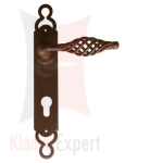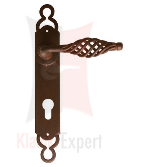 Klamka Budapest 2800 na szyldzie długim z otworem na wkładkę patentową zwykły wykonana jest z ręcznie kutego żelaza i dostępna w trzynastu powłokach kolorystycznych. Pozwala to dobrać kolor klamki do charakteru wnętrza lub do kolorystyki drzwi i okien.