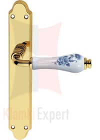 Klamka DALIA 661 szyld długi bez otworu (porcelana biała, kwiat niebieski)