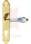 Klamka DALIA 661 szyld długi z otworem na wkładkę (porcelana biała, kwiat niebieski)
