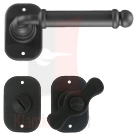 Klamka Klamka Lisbona 2105 z blokadą WC wykonana jest z ręcznie kutego żelaza i dostępna w trzynastu powłokach kolorystycznych. Pozwala to dobrać kolor klamki do charakteru wnętrza lub do kolorystyki drzwi i okien.