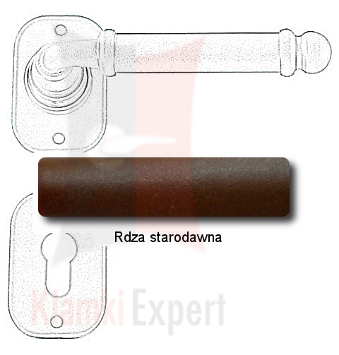 Klamka Klamka Lisbona 2105 z dolną rozetą na wkładkę patentową wykonana jest z ręcznie kutego żelaza i dostępna w trzynastu powłokach kolorystycznych. Pozwala to dobrać kolor klamki do charakteru wnętrza lub do kolorystyki drzwi i okien.