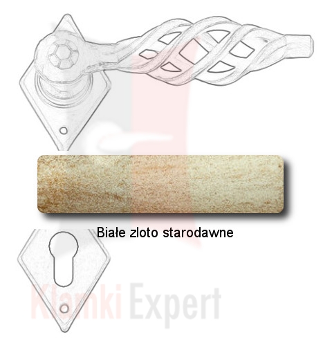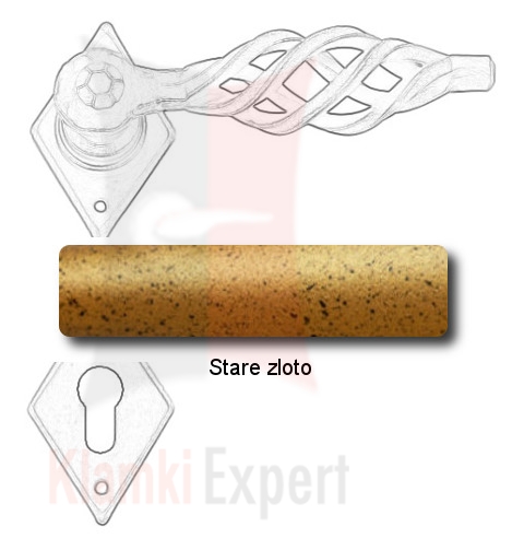 Opis: kpl. klamek na szyldzie 2301 z dolną rozetą na zwykły klucz, wkładkę patentową lub z blokadą wc ilość: 1 kpl. (2 szt.) wymiary: 70×45×2 mm, długość rękojeści 125 mm sposób mocowania: na wkręty do drewna (instrukcja montażu) dwie sprężyny powrot...