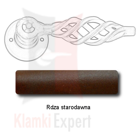 Zobacz próbki jako pokaz slajdówKlamka Londra 2302 bez dolnej rozety wykonana jest z ręcznie kutego żelaza i dostępna w trzynastu powłokach kolorystycznych. Pozwala to dobrać kolor klamki do charakteru wnętrza lub do kolorystyki drzwi i okien.