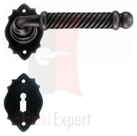 Zobacz próbki jako pokaz slajdówKlamka Madrid 2101 z dolna rozetą na klucz zwykły wykonana jest z ręcznie kutego żelaza i dostępna w trzynastu powłokach kolorystycznych. Pozwala to dobrać kolor klamki do charakteru wnętrza lub do kolorystyki drzwi i okien.