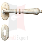 Zobacz próbki jako pokaz slajdówKlamka Mosca 2698 z dolną rozetą na wkładkę patentową wykonana jest z ręcznie kutego żelaza i dostępna w trzynastu powłokach kolorystycznych. Pozwala to dobrać kolor klamki do charakteru wnętrza lub do kolorystyki drzwi i okien.