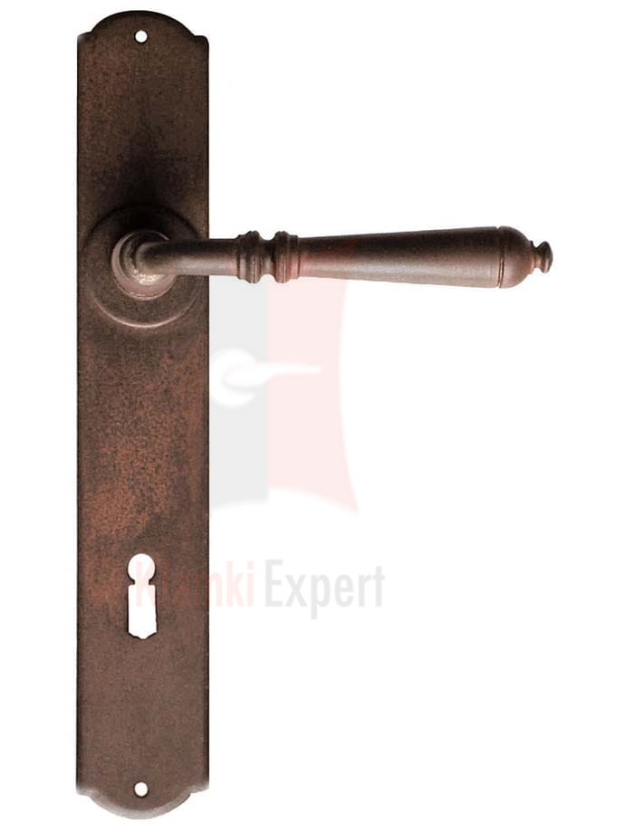 Klamka Mosca 2700 z otworem na klucz zwykły wykonana jest z ręcznie kutego żelaza i dostępna w kilkunastu powłokach kolorystycznych. Pozwala to dobrać kolor klamki do charakteru wnętrza lub do kolorystyki drzwi i okien. Okucie znajduje zastosowanie do drzwi wewnętrznych.