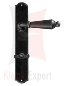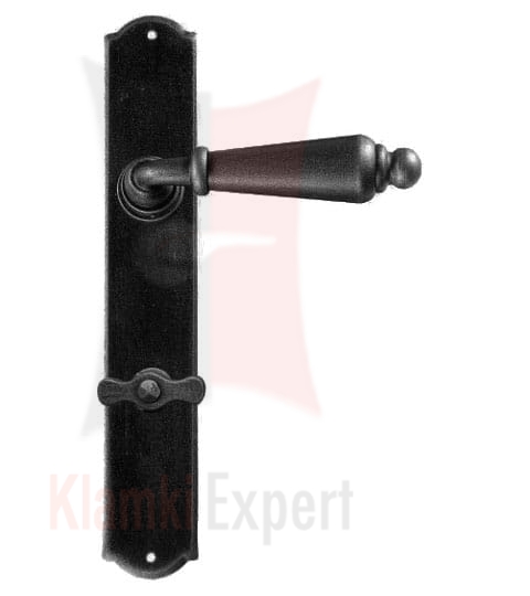 Opis: kpl. klamek na szyldzie podłużnym z otworem na zwykły klucz, wkładkę patentową lub z blokadą wc ilość: 1 kpl. (2 szt.) wymiary: 240 × 40 × 2 mm, długość rękojeści 130 mm sposób mocowania: na wkręty do drewna (instrukcja montażu) dwie sprężyny p...