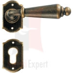 Opis: kpl. klamek na szyldzie owalnym z dolną rozetą na zwykły klucz, wkładkę patentową lub z blokadą wc ilość: 1 kpl. (2 szt.) wymiary: szyld owalny 64 × 40 × 2 mm, długość rękojeści 130 mm sposób mocowania: na wkręty do drewna (instrukcja montażu) ...