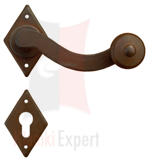 Wymiary: dł. rękojeści 105 mm, rozeta 70x45x2 mm