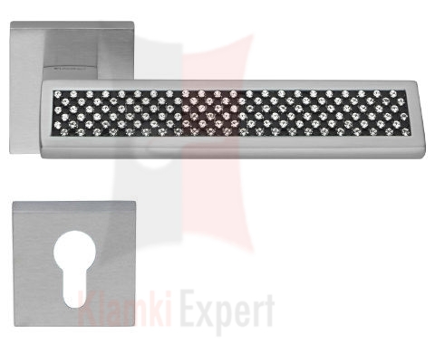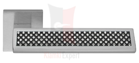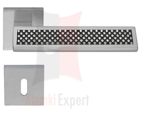 Klamka Riflesso Black wykonana jest z mosiądzu chromowanego i ozdobiona kryształkami Swarovskiego Produkowana jest na rozecie kwadratowej nr 019. Wykończenie (kolor) CS chromowany matowy. Klamka dostępna jest we wszystkich konfiguracjach: bez dolnej rozety, z rozetą na klucz zwykły, wkładkę patentową (bębenkową) lub z blokadą WC (łazienkową). Produkt oryginalnie włoski, wyprodukowany przez firmę Linea Cali srl z siedzibą we Włoszech.