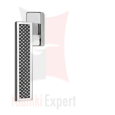 Klamka okienna Riflesso Black wykonana jest z mosiądzu i ozdobiona kryształkami Swarovskiego. Jest to klamka do okucia obwiedniowego tzw. 4 skokowa. Produkt oryginalnie włoski, wyprodukowany przez firmę Linea Cali srl z siedzibą we Włoszech.