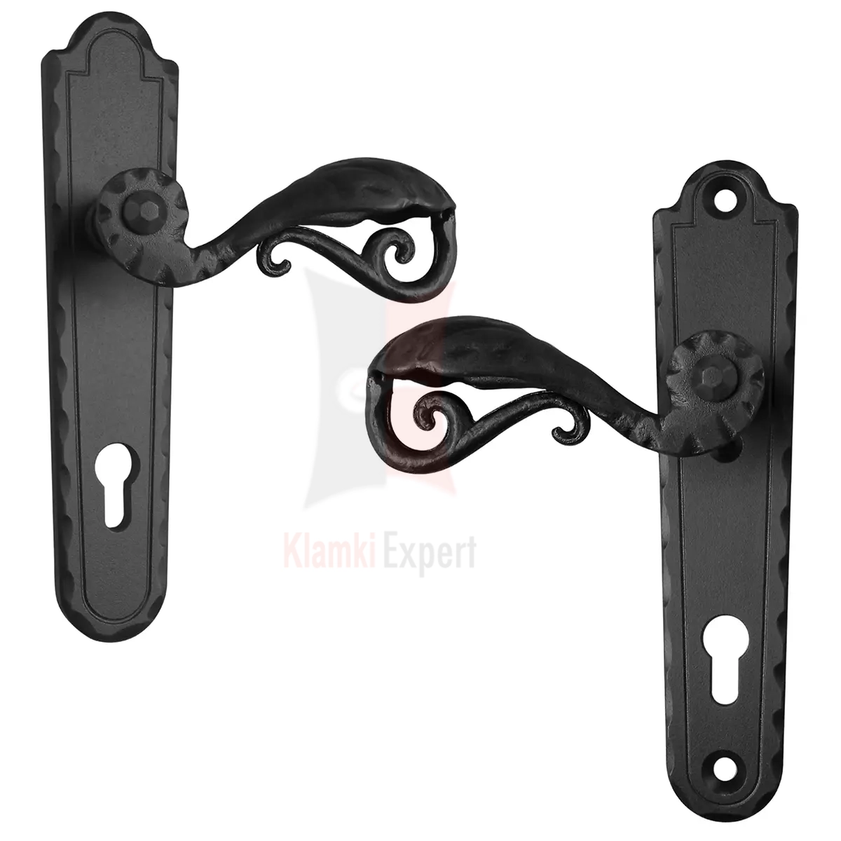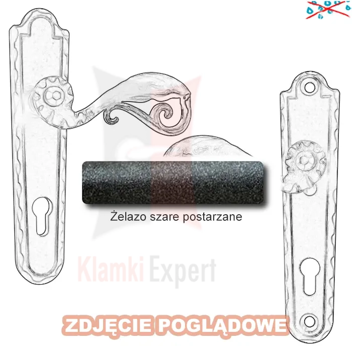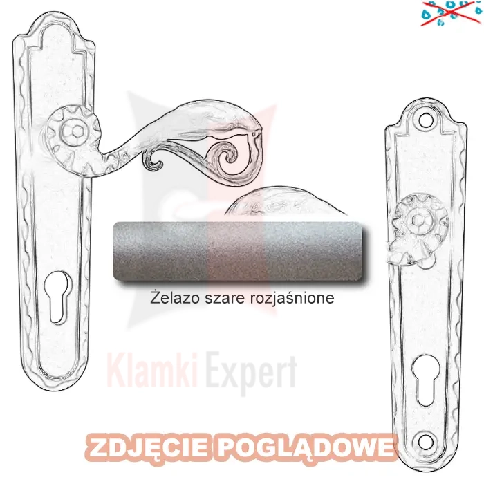 Klamko-klamka zewnętrzna Abella 505 na szyldzie długim przeznaczona jest do drzwi zewnętrznych oraz wejściowych, zarówno w domach prywatnych, jak i w obiektach użyteczności publicznej. Szyld klamki jest zabezpieczony przed demontażem od strony zewnętrznej. Okucie wykonane jest z ręcznie kutego żelaza i dostępna w czternastu powłokach kolorystycznych, może być stosowane na zewnątrz pomieszczeń. Grubość szyldu zewnętrznego wynosi 10 mm.